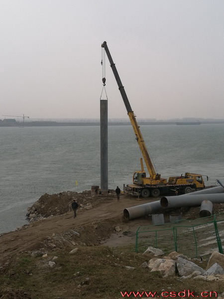 開始樹第一根樁管,25噸的吊車都不顯大